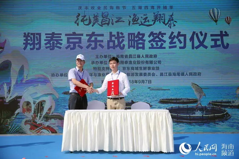 9月7日上午,主題為純美昌江,漁運翔泰昌江棋子灣?翔泰2018首屆金鯧魚開捕季在昌江黎族自治縣海尾碼頭隆重舉行,此次活動由昌江縣政府主辦,海南翔泰漁業股份有限公司承辦,由昌江縣海洋與漁業局、昌江縣旅游發展委員會、昌江縣海尾鎮人民政府共同協辦,京東為此次活動特別支持單位。