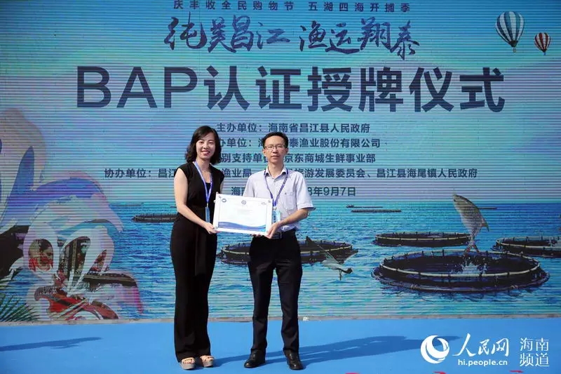 活動現場,翔泰漁業和京東生鮮電商平臺簽署戰略合作協議,并接受京東生鮮農場的授牌,雙方將進一步加深合作關系,持續為消費者帶來健康安全的水產品。同時,GAA(全球水產養殖聯盟)在現場為翔泰頒發BAP認證證書,這也是GAA所頒發的第一張金鯧魚國際認證******水產養殖規范證書。