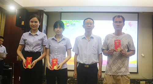 隨后,劉榮鋒常務副總經理為金榜題名的職工子女和通過自學考取高校的職工頒發了獎學金。