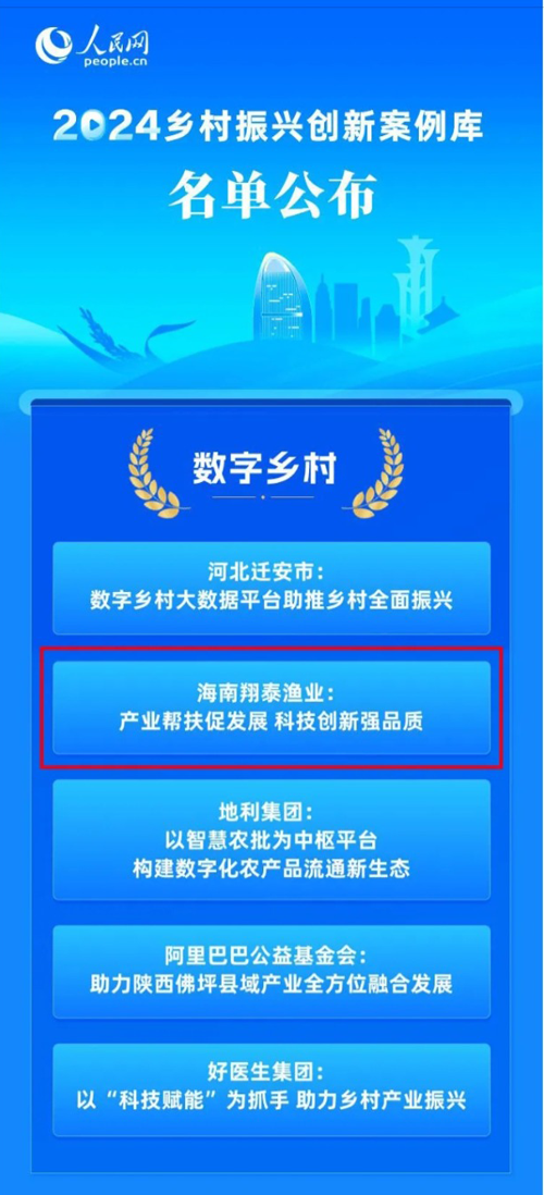 近日,由人民網(wǎng)主辦的“2024鄉(xiāng)村振興大會(huì)”暨“百日直播”數(shù)商興農(nóng)系列推介在北京舉行。在大會(huì)現(xiàn)場(chǎng),“2024鄉(xiāng)村振興創(chuàng)新案例庫(kù)”正式上線,為鄉(xiāng)村振興的持續(xù)發(fā)展注入了新的動(dòng)力。海南翔泰漁業(yè)股份有限公司 “產(chǎn)業(yè)幫扶促發(fā)展,科技創(chuàng)新強(qiáng)品質(zhì)”案例成功入選。