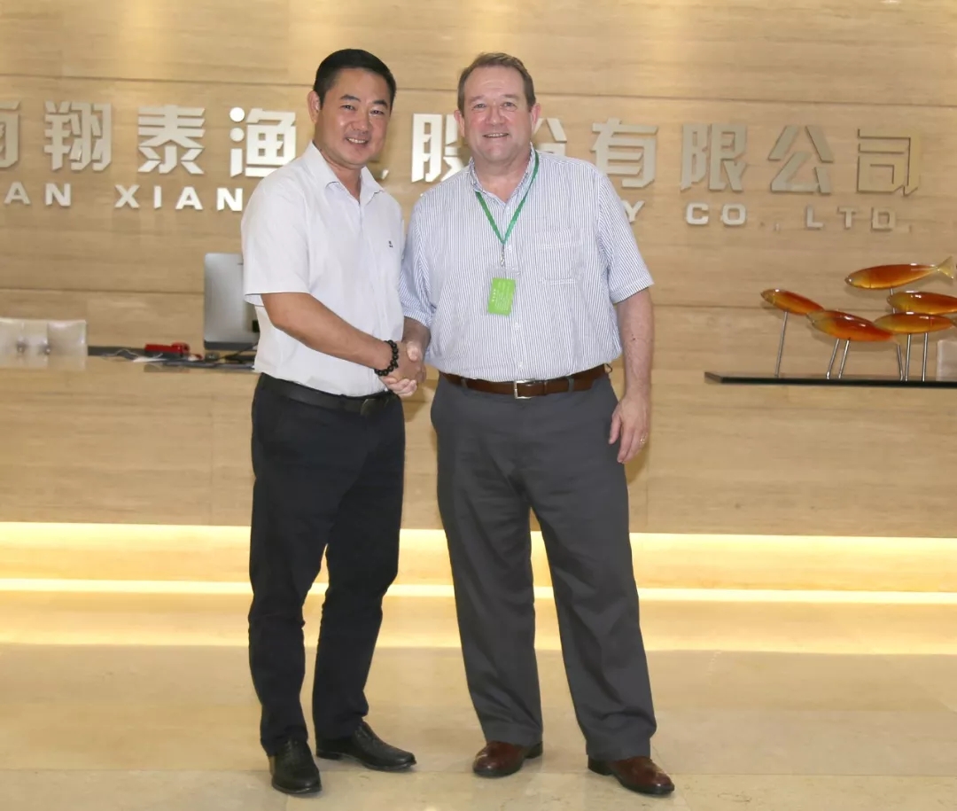 2018年8月10日上午,美國漁業協會會長John Connelly蒞臨海南翔泰漁業股份有限公司參觀考察。海南翔泰漁業董事長劉榮杰,海南翔泰漁業總經理林孝文現場熱情接待。