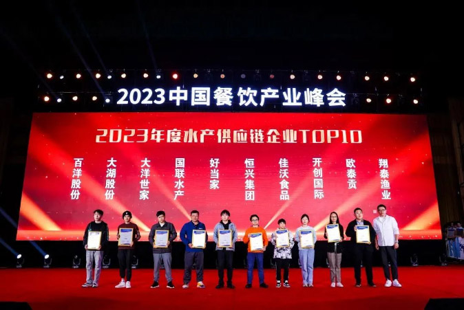(圖為:海南翔泰漁業榮獲“2023年年度水產供應鏈企業TOP10”)