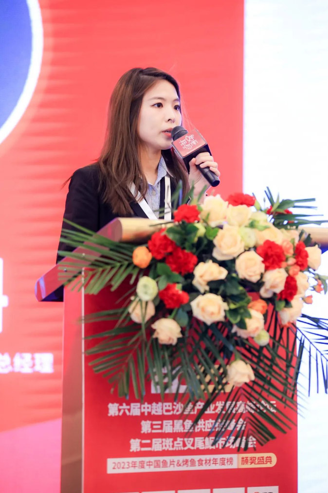 會上海南翔泰漁業股份有限公司副總經理 劉子丹 分析整個國產巴沙魚行業的現狀和前景,以及翔泰如何致力于打造國產巴沙魚優勢及布局。