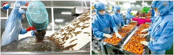 (圖為:海南翔泰漁業蝦加工車間現場)