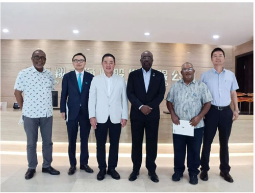 2023年6月10日下午,安提瓜和巴布達外交兼農業、商務部長Hon. Everly Paul Chet Greene,外交兼農業、商務常秘Mr. Liverpool James Anthony,總理經濟特使劉遲先生以及來自CFA Gloabal Ltd公司的董事徐博先生等一行到訪海南翔泰漁業股份有限公司(以下簡稱“海南翔泰漁業”),受到海南翔泰漁業董事長劉榮杰等公司領導熱情接待。雙方就共同開發海洋資源、投資安提瓜和巴布達海洋產業等方面進行了深入交流。