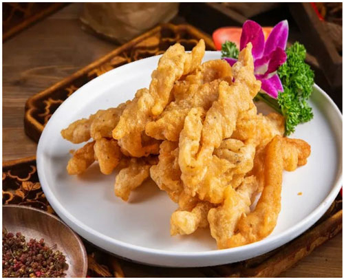 剛出爐的椒麻小酥魚,外層是一層酥脆的面糊,色澤金黃,輕輕咬開是軟綿厚實的魚肉,魚肉鮮香四溢,遇上椒麻香味,口感濃郁不油膩,給人視覺和味覺的雙重沖擊,每一口都是獨特的味蕾體驗。