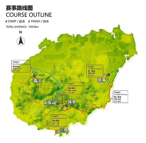 本次賽事共設瓊海-瓊海,瓊海-保亭,保亭-五指山,五指山-昌江,昌江-三亞五個賽段,全程共781.1公里,總獎金30萬美元,總計有20支高水平職業車隊參賽、140位選手共同展開速度與激情的較量。