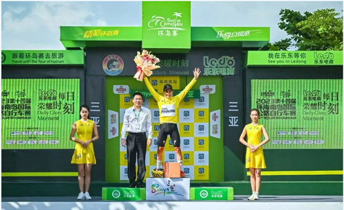 精彩環島賽,樂享自貿港!賽場上,車手們無懼酷熱天氣,在賽道上迎風疾馳,展現出非凡的熱血和毅力。經過5個賽段的激烈角逐,來自哥倫比亞麥德林車隊的47歲老將塞維利亞以總成績第一名,獲得了本屆環島賽最高榮譽席,奪得總成績黃色領騎衫。